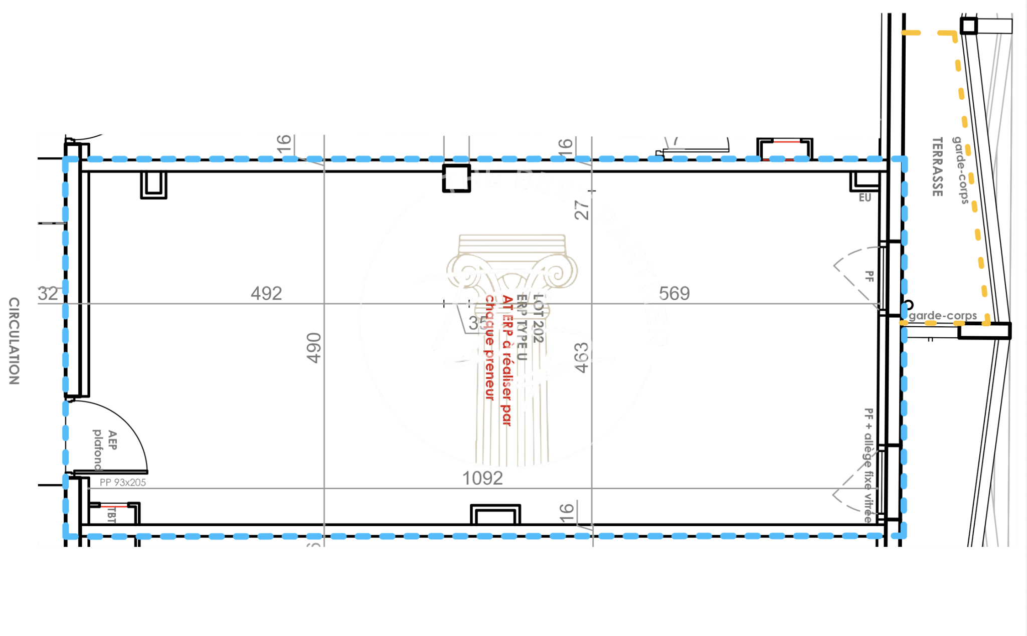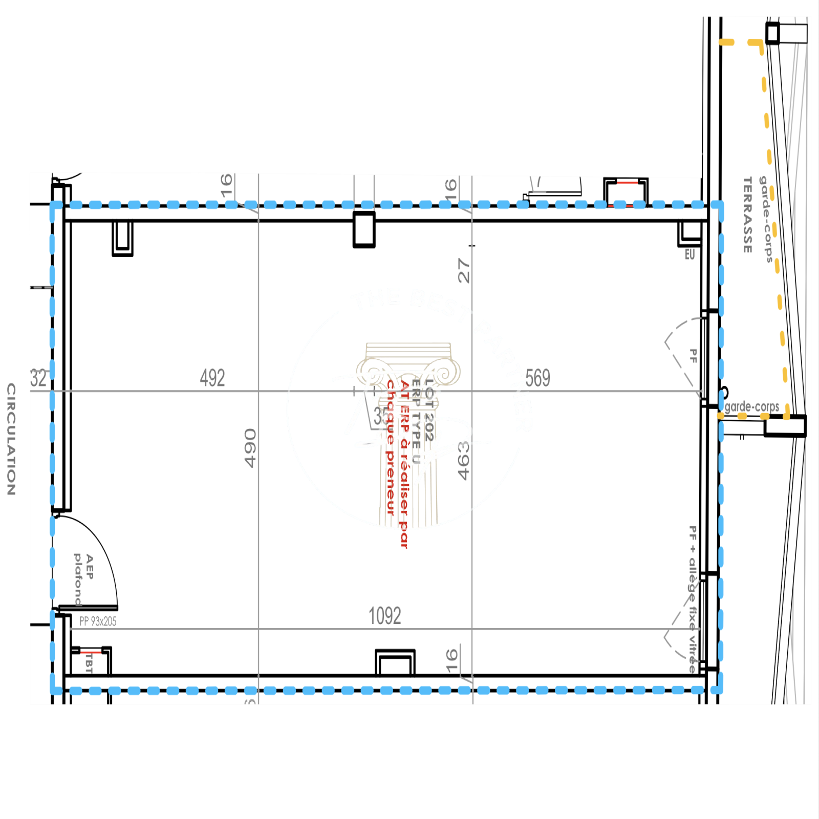 Le lot 202, situé au sein du pôle, propose un local professionnel neuf d’une surface utile de 53,44 m² et d’une surface brute locative de 61,55 m². Il bénéficie également d’une terrasse. À ce jour, aucune place de parking n’est attribuée. Ce cabinet offre un cadre de travail fonctionnel et attractif, idéal pour exercer dans un environnement médical dynamique, au cœur d’un emplacement recherché en bord de mer.