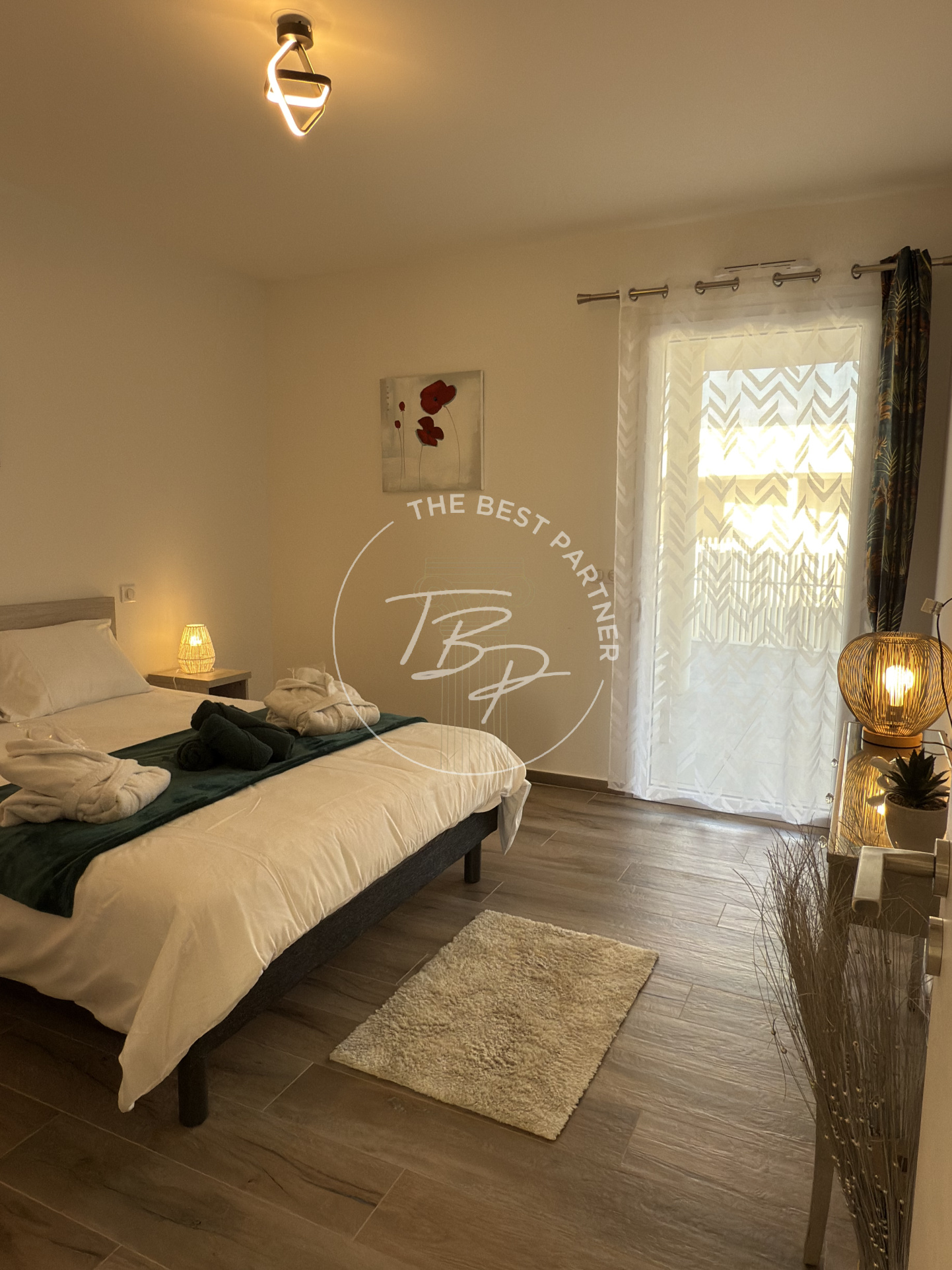 L’espace intérieur de 110 m² en loi Carrez comprend 3 chambres et 2 salles de bains : une salle de bains privative à une chambre et une salle de bains commune, idéale pour le confort de toute la famille. La cuisine ouverte sur une belle pièce à vivre lumineuse offre un espace convivial et pratique. Toutes les chambres ont un accès direct à la terrasse, où vous trouverez une partie couverte avec un jacuzzi 5 places en coque et un coin barbecue, pour profiter pleinement de l’extérieur. La terrasse permet d’augmenter la surface utile à 300 m².