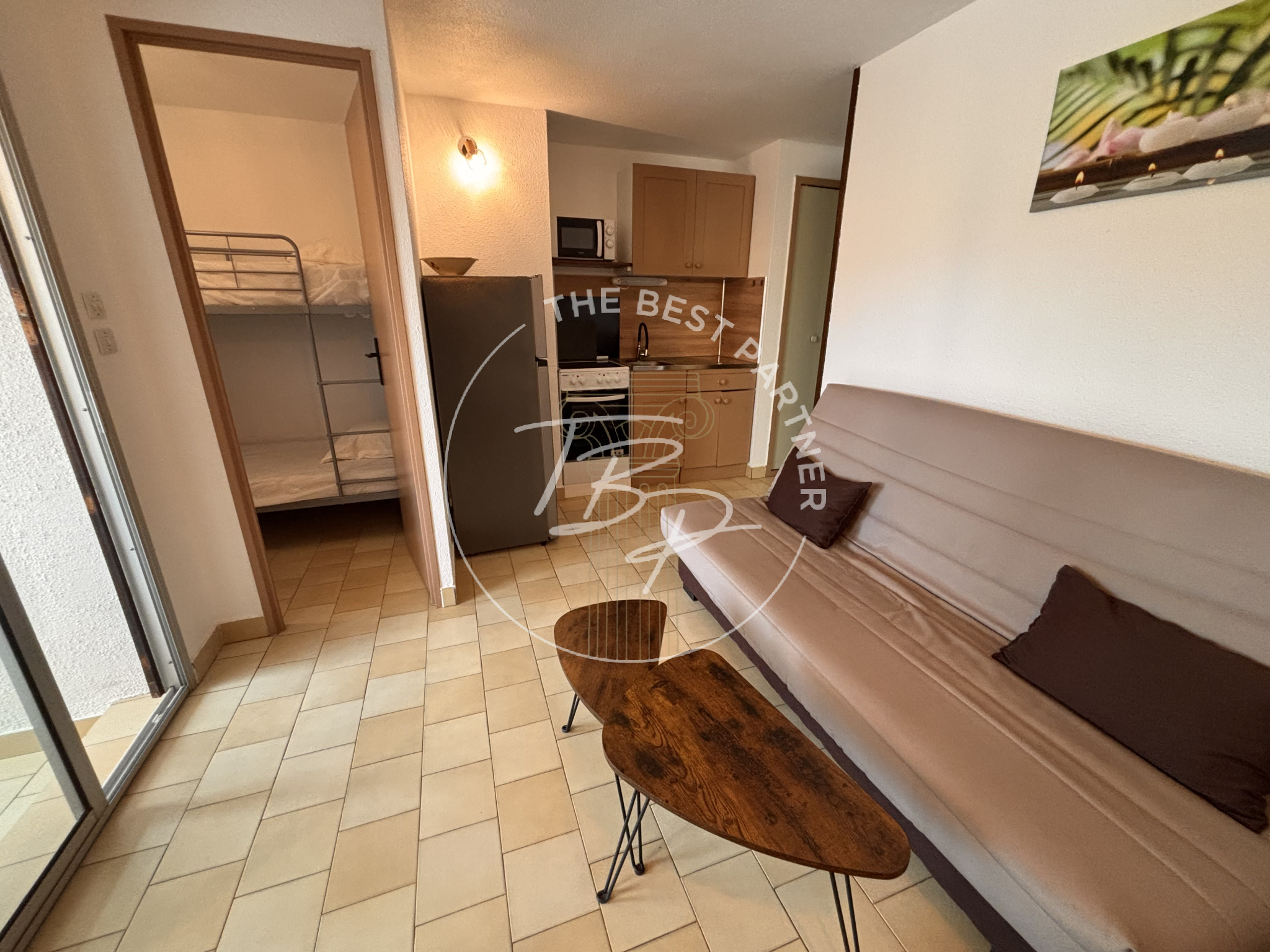 À 100 m de la plage, au sein d’une copropriété sécurisée avec piscine, résidence Laguna Beach, studio cabine idéal pour résidence secondaire ou investissement locatif. Il se compose d’un séjour avec coin cuisine (13,73 m²), d’une cabine indépendante (3,53 m²), d’une salle d’eau, d’un WC séparé et d’une loggia fermée et vitrée de 6,58 m² avec aperçu mer. Surface habitable : 20,23 m² (surface totale avec loggia : env. 26,8 m²).